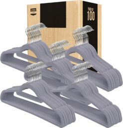 Utopia Home Premium Velvet Hangers 100 Pack – Non-Slip Clothes Hangers with Tie Bar – Grey Hangers – Standard Hangers with 360 Degree Rotatable Hook – Heavy Duty Coat Hangers