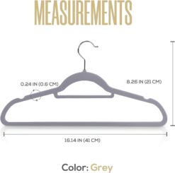 - VELVET CLOTHES HANGER – Set of elegant velvet hangers, each measuring 16.14 x 0.24 x 8.26 inches. Made from sturdy ABS material that is strong enough to hold 10 pounds.