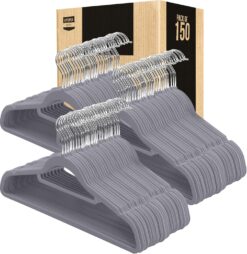 Utopia Home Premium Velvet Hangers 150 Pack – Non-Slip Clothes Hangers with Tie Bar – Grey Hangers – Standard Hangers with 360 Degree Rotatable Hook – Heavy Duty Coat Hangers