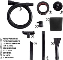 Vacmaster Professional – Professional Wet/Dry , 5 Gallon, Beast Series, 5.5 HP 1-7/8″ Hose Jobsite Vac (VFB511B0201), Black