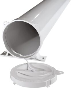 Stop storing your sewer hoses in your compartments or bumpers. Try the EZ hose carrier from Valterra Products! Fits all 3″ drain hoses and fittings with the exception of one-piece 90-degree sewer fittings. Inner diameter: 4.450″. Comes assembled with mounting brackets for easy installation and includes self-tapping screws. Easily adjustable to adapt to the best mounting location and hose size! Comes with quarter-turn twist lock caps with straps. Both caps are vented to prevent moisture from building up in the carrier. Each cap has a loop that you can add a padlock to for extra security. Works great, especially if you’re storing your expensive fishing poles (store without reels attached)!!