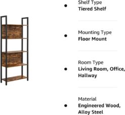 | Model Name | 5-Tier Bookshelf, Book Shelf, Industrial Bookcase, with Steel Frame, for Living Room, Home Office, Bedroom |