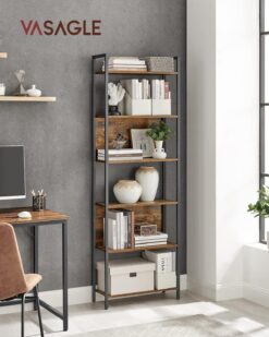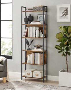 VASAGLE 6-Tier Bookshelf, Book Shelf, Industrial Bookcase, with Steel Frame, for Living Room, Home Office, Bedroom, 9.4 x 24.4 x 73 Inches, Rustic Brown and Black ULLS113B01