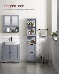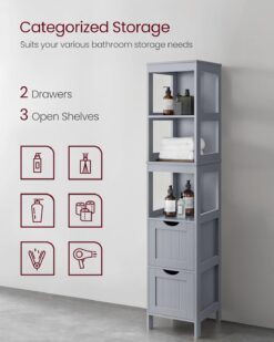 VASAGLE Bathroom Floor Cabinet, Bathroom Storage Organizer Rack Stand, Multifunctional Corner Unit, 2 Drawers, Dove Grey UBBC066G02