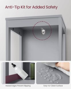 - For safety, be sure to secure the bathroom cabinet to the wall with the included anti-tip kit.