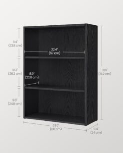 - [Spacious] This 3-tier bookcase sized 9.4″D x 23.6″W x 31.9″H utilizes vertical space to display your favorite books or special treasures. This keeps them easily accessible in the living room, study, or bedroom