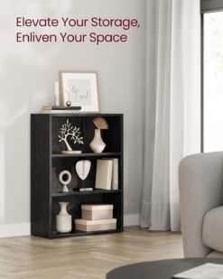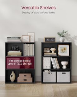 VASAGLE Bookshelf, 23.6 Inches Wide, 3-Tier Open Bookcase with Adjustable Storage Shelves, Floor Standing Unit, Ebony Black ULBC163T56