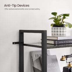 - [Support Firmly, Support Steadily] Crafted with robust steel and premium particleboard, each shelf holds up to 22 lb, so you can feel free to set thick books on. Also, equipped adjustable feet keep it balanced