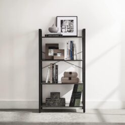 - [Jazz Up Your Space] No boring pieces. Classic black frame, greige shelves, X-shaped cross rods…these elements come together in this bookshelf to spice up your room