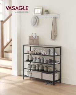 - Model Name Shoe Organizer for Closet with 4 Mesh Shelves and Large Top for Bags