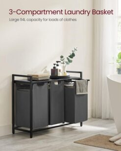 VASAGLE Laundry Hamper, Laundry Basket, Laundry Sorter with 3 Pull-Out and Removable Bags, Shelf, Metal Frame, 3 x 10 Gallons (38L), 36.4 x 13 x 28.4 Inches, Black and Gray UBLH301G01