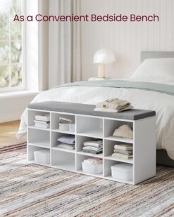 VASAGLE Shoe Bench with Cushion, Storage Bench with Padded Seat, Entryway Bench with 12 Compartments, Adjustable Shelves, for Bedroom, 11.9 x 40.9 x 18.9 Inches, White and Gray ULHS012W14