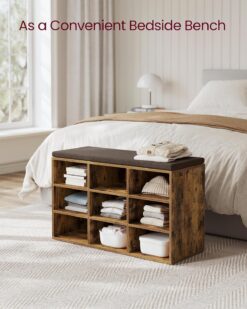 - [Multifunctional] With its stylish look and functional design, this storage bench is more than just a convenient shoe bench in your entryway. It also serves perfectly as a storage shelf in your living room or an end-of-bed bench in your bedroom
