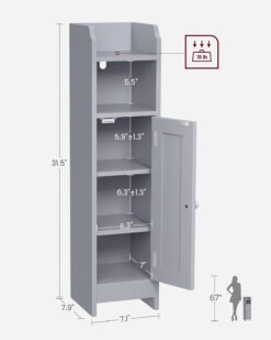 - [Adjustable Shelves] The 2 adjustable shelves behind the cabinet door can be adjusted up or down by 1.3″, allowing this narrow bathroom storage cabinet to accommodate items of various sizes
