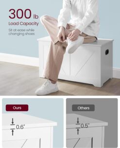 VASAGLE Storage Chest, Storage Trunk with 2 Safety Hinges, Storage Bench, Shoe Bench, Barn Style, 15.7 x 31.5 x 18.1 Inches, for Entryway, Bedroom, Living Room, White ULSB062T14