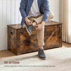 VASAGLE Storage Chest, Storage Trunk with 2 Safety Hinges, Storage Bench, Shoe Bench, Barn Style, 15.7 x 39.4 x 18.1 Inches, for Entryway, Bedroom, Living Room, Rustic Brown ULSB060T01