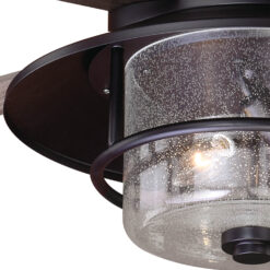The Charleston 56 inch indoor-outdoor ceiling fan brings a trendy nautical look to your living space. The new bronze finish and clear seeded glass on the included light kit combine perfectly to bring you a rustic farmhouse look. Blades are reversible; choose between driftwood or dark maple for even more flexibility. This fan is operated with an included remote control for added convenience. An LED light source provides energy saving, low maintenance and long lasting performance. Exterior damp rated, ideal for interior and exterior spaces such as entryways, family rooms, or covered outdoor porches.