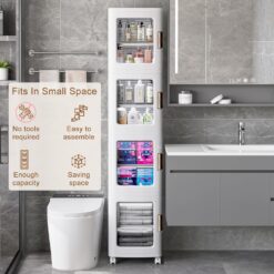 - Waterproof & Dustproof: This plastic storage cabinet features adhesive doors with tough closing to protect items from getting wet. The slim storage cabinet has dust out to keep inside clean