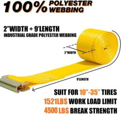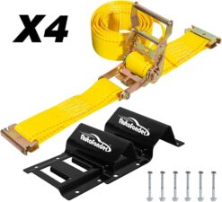 Vehicle Wheel Chock Tie Down kit 4500lb Break Strength-4 Pack 2″ x9′ E Track Straps-Ultimate Heavy Duty Trailer Tire Strap System for ATV,UTV,Lawn Mower