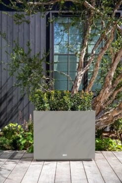 Veradek Block Series Span Plastic Planter – Tall Rectangular Planter for Indoor or Outdoor Patio/Porch, Gray, 24.25 in Height, 12 in Width, 30 in Length