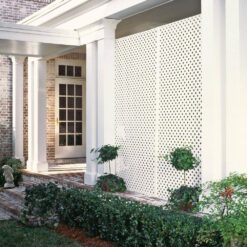 The 0.2 in. x 48 in. x 8 ft. White Vinyl Privacy Diamond Lattice features a vinyl construction that is both weather and impact resistant. It features a low-maintenance design that is easy to install and maintain. It can also be used as garden lattice as the vinyl material resists wear from the weather and moisture. Lattice will not discolor or show scratches over time.