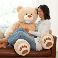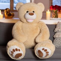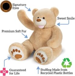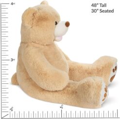 - Adorable details – This is a unique giant Teddy Bear friend with a mega 4-foot size; styled to perfection, it includes an open-mouthed smile and heart-shaped appliqued paw pads.