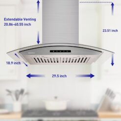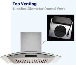 - 【Powerful Turbo Motor & 800cfm Suction】Equipped with single turbo motors and a 6” top-round vent, this 30 inch wall mount range hood provides strong and efficient suction to remove smoke, steam, and cooking odors from your kitchen.
