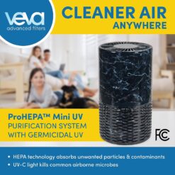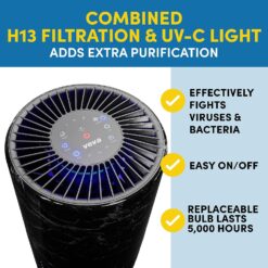 - EXTRA POWER: Disinfect air with extra power from UV-C light. The air purifier also features a HEPA filter and replaceable 3-pass filters with high air volume capacity and a black marbled cylindrical shape, making it ultra stylish and sleek.