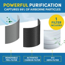 - USER FRIENDLY: With user-friendly performance and ease, this air purifier is a perfect choice! Featuring a more compact size than other models, it’s easy to transport and fits both small & large rooms.