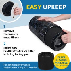 The ProHEPA Mini UV Air Purifier combines 360° of HEPA filtration with powerful UV light to help kill airborne germs and viruses. 3 speeds, automatic air purification mode, and whisper-quiet operation make it perfect for the bedroom, office, and beyond.