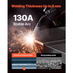 - High Performance: Delivering a powerful 130A output current, this welding machine supports welding thicknesses of up to 8mm; It is compatible with various materials, including mild steel, stainless steel, cast iron, sheet metal, square pipes, and metal cage; It is the professional choice for your welding tasks, achieving smooth and flawless welds;