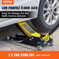 - Jack it Up: 2.5 tons/5500 lbs strong loading capacity, VEVOR’s floor jack can help you raise your car for whatever reason. Ensures your lifting operation is reliably and securely. Replace a tire, change oil or maintain the brake, to take matters into your own hands!