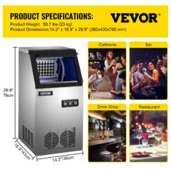 - Wide Application: The industrial ice machine works great for applications, including coffee shops, party gatherings, homes, restaurants, bars, hotels, grocery stores, etc.