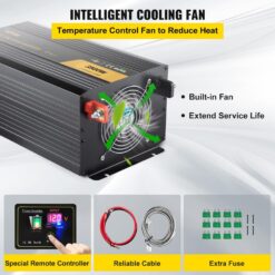 - Package content:1 x pure sine wave power inverter,12 x 30 amp fuses,2 x battery cables,4 x fixed screws,1 x user manual
