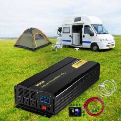 2500-Watt Pure Sine Wave Power Inverter. Sturdy Aluminum Alloy, LCD Screen and Intelligent Fan Cooling. This pure sine wave inverter is highly recommended for sensitive electronic equipment that requires cleaner AC power to operate effectively. In this 12-Volt DC pure sine wave power inverter, the 120-Volt AC output harmonically follows a smooth sine wave and is almost identical to normal mains electricity. Therefore, it allows you to power up multiple loads such as office equipment and major household appliances from your vehicle. It is ideal for laptops, motors, freezers, fans, LCD, fridges, etc.