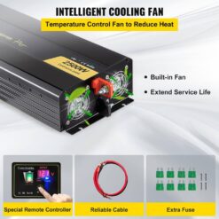 VEVOR CZXNBQDMKWKDDF3BRV9 Pure Sine Wave Power Inverter 2500-Watt Car Inverter DC 12-Volt to AC 120-Volt with USB Port LCD Display Remote Control
