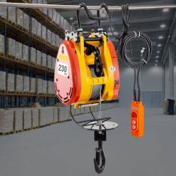 507 lbs. Lift Electric Hoist. 1300-Watt Copper Motor and Anti-Rotate Steel Wire and High Security. This lift electric hoist is designed for lifting and moving heavy-duty applications. The steel construction and pure copper motor make it durable and high-efficient. The load capacity and lift height reach to 507 lbs. and 98 ft. Therefore, it is an ideal handling tool for factories, docks, warehouses, goods lifting, construction sites and other places.