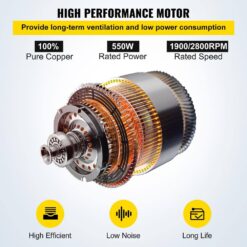 - Specifications:Power: 550 Watt,Voltage: 110-Volt,Frequency: 50 / 60 Hz,Material: Steel,Motor Speed: 1900 and 2800 RPM,Air Flow: 1471 / 2295 CFM, 2500 and 3900 m³/h,Fan Diameter: 12 in.,Plug: Leak-proof GFCI Plug