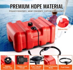 - Strong Compatibility: The boat gas tank comes with a 9.8 ft/3 m long fuel hose with a 0.3″/8 mm inner diameter, compatible with most marine fuel tank interfaces. It’s the perfect match for your outboard motor adventures, whether you’re on a fishing boat, or chilling on a deck boat.