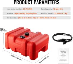 VEVOR Portable Fuel Tank, 12 Gallon/55L, Plastic Outboard Marine Tank with Hose, Easy to Carry for Yacht, Fishing, Deck Boats, Red
