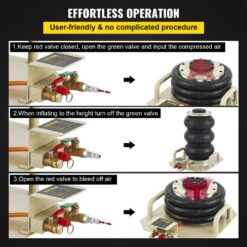The VEVOR pneumatic jacks are designed to be tough and built to last. They are compact, powerful and very fast to use. The bag air jack can be lifted in 5-seconds. Inflated with compressed air, they are easy to handle.