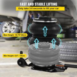 VEVOR pneumatic jack is designed tough and built to last. With 3-tons/6600 lbs. capacity, a lifting range of 5.5 in. to 15.75 in. and a lifting time of only 3-seconds to 5-seconds, this triple bag air Jack is compact, powerful and very fast to use. Inflated with compressed air, they are easy to handle. The pneumatic jack is one of the most useful tools in the body shop.
