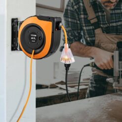 - Overload Protection for Peace of Mind: Rigorously tested for electrical security, breaker lifespan, and on/off functionality, our retractable extension cord reel shields your devices from short circuits and overloads. Automatically cuts power if usage exceeds 15A, ensuring secure operation of your power tools. Simply press the reset button to restore power and keep working