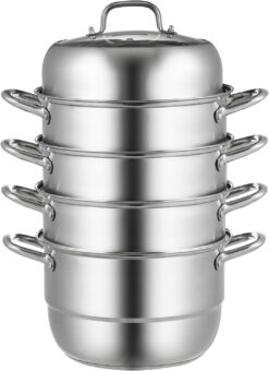 - Food-Grade 304 Stainless Steel: VEVOR food-grade 304 stainless steel steamer – built to last with its durable and sturdy construction, while the well-polished mirror surface enhances thermal conductivity for efficient heating. 0.5mm thickened pot wall prevents deformation, and the anti-oxidation protective layer also keeps the food steamer rust-free and easy to clean.