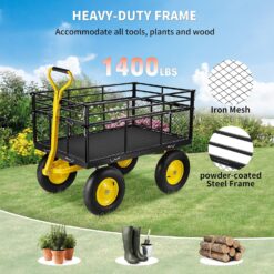 VEVOR Steel Garden Cart, Heavy Duty 1400 lbs Capacity, with Removable Mesh Sides to Convert into Flatbed, Utility Metal Wagon with 2-in-1 Handle and 15 in Tires, Perfect for Garden, Farm, Yard