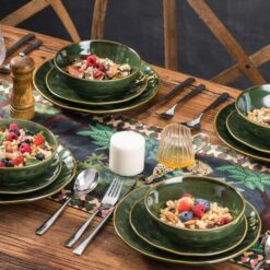 vicrays Ceramic Pasta Bowls Set, 32 Ounce Soup Bowls, Large Salad Bowls, Chip Resistant, Dishwasher Microwave Safe, Fluted stoneware Bowls for Kitchen, Serving Bowls, Set of 6 (Green)