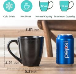 - 12 OUNCE COFFEE MUG SET: Perfect size for your morning coffee. Suitable capacity not only satisfies your coffee need, but also have the extra room for cream or milk. This coffee mug set must be a functional partner for your new day.
