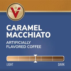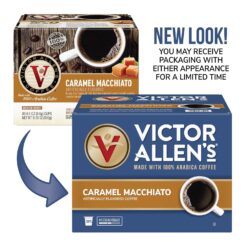 - Contains 1 box of 80 pods of Victor Allen’s Caramel Macchiato Flavored Single Serve Coffee Pods (80 pods total)