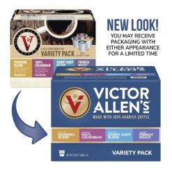 Victor Allen’s Coffee’s Variety Pack; a mix of our most popular roasts and blends! A unique combination of favorite light, medium and dark roasts, there is sure to be a favorite for everyone! Morning Blend; a light body brew known for its even-keeled flavor profile and smooth finish. 100% Colombian; beans exclusively from the top coffee farms in South America. Donut Shop Blend; a medium roast brew for the coffee purist. French Roast; a velvety body with a soft, smoky flavor; intensely rich but always smooth)