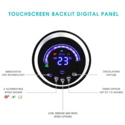 The New Vie Air 50 in. Digital 3-Speed High Velocity Tower Fan with Fresh Air Ionizer and Remote Control in Sleek Black features elegant engineering to provide you with the ultimate comfort. The innovative ion technology releases positive and negative ions to clean and refresh the air in order to provide a healthier environment. With an oscillating function to efficiently cool every corner of the room, this standing fan comes with different modes and speeds to accommodate all your various cooling needs, as well as a timer function for more convenience. The back-lit digital touchscreen panel allows you to easily set your floor fan and effortlessly monitor the settings. The fan also comes with a remote control for added accessibility.